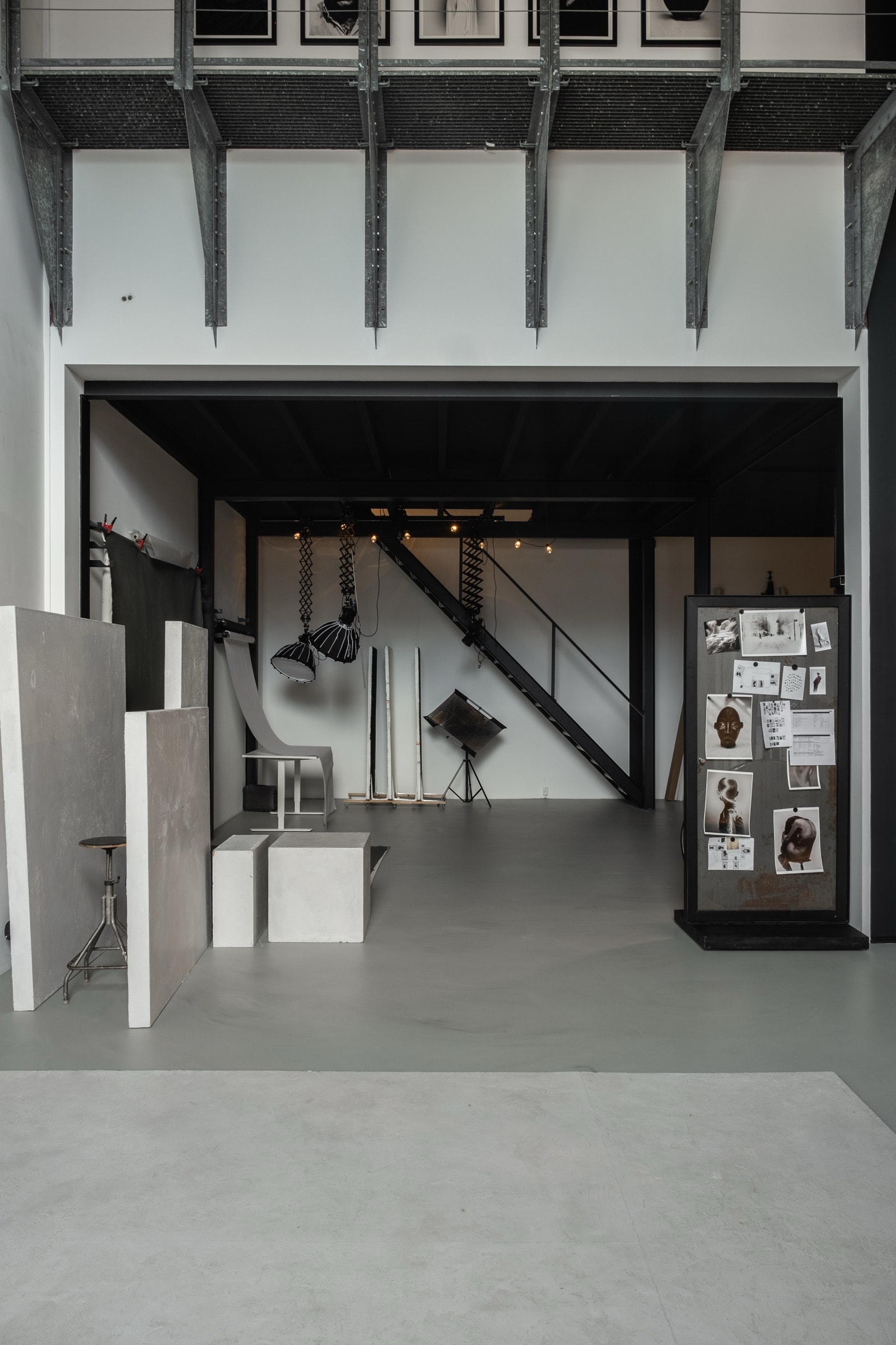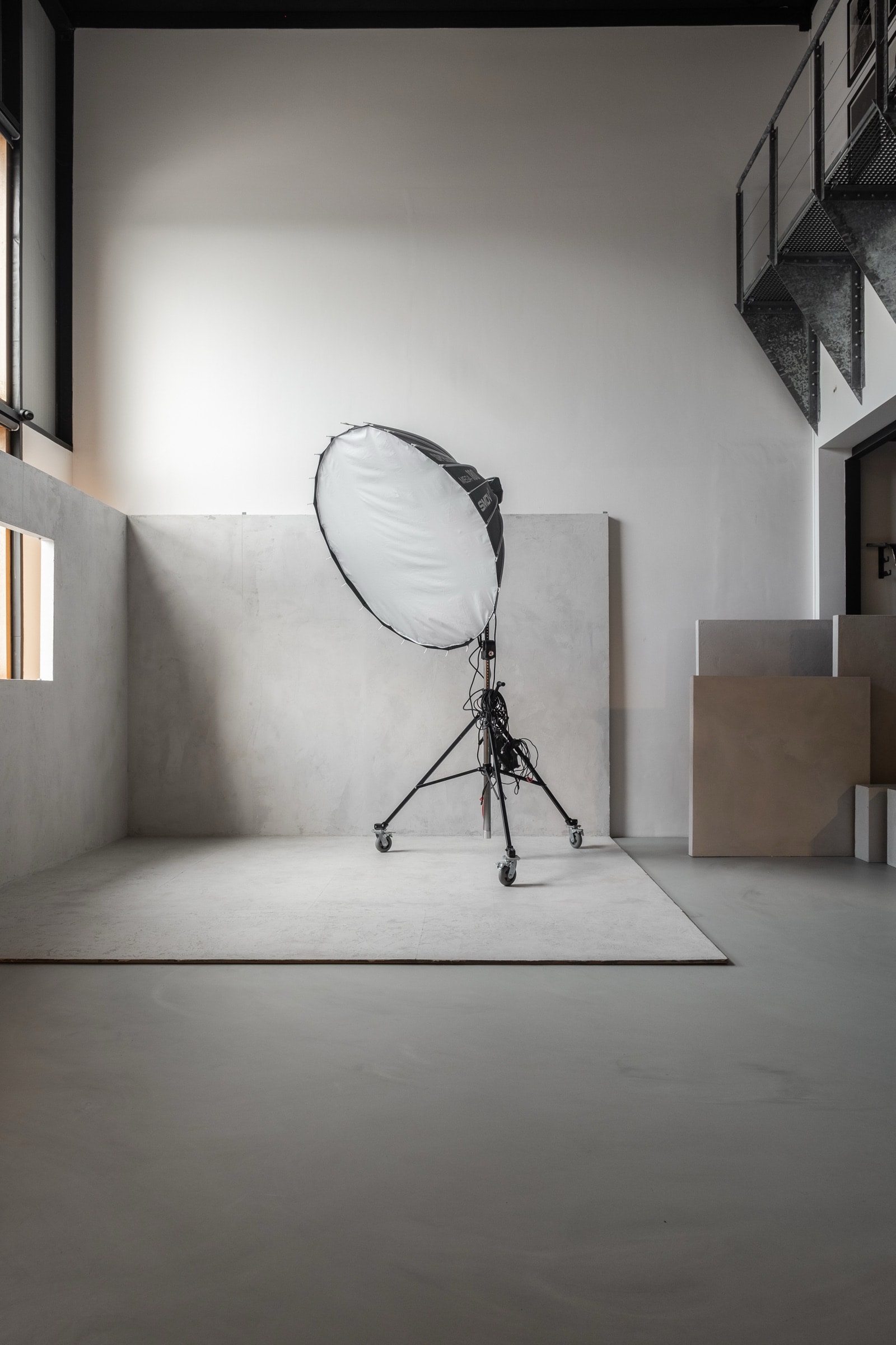Het is de studio die hij elders niet kon vinden. Plafondhoogte, lichtkwaliteit, vloer, apparatuur — elke beslissing is genomen door iemand die de ruimte nog steeds voor zijn eigen werk gebruikt. De studio is onderdeel van 1605 Collective, een creatief huis met eigen uitgeverij, galerie en fotografiepraktijk.